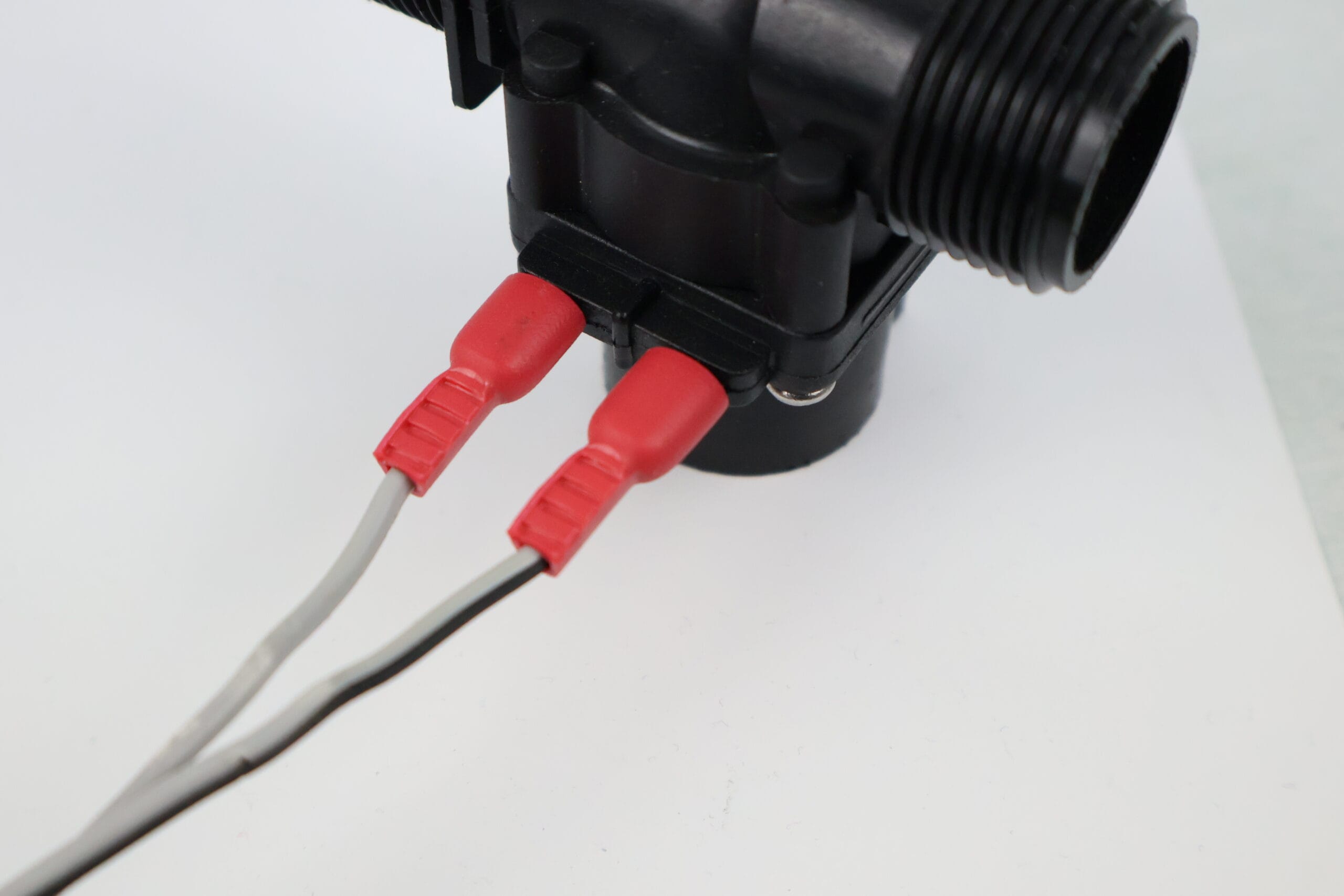 Observe that the red connectors are firmly attached to the solenoid pins.